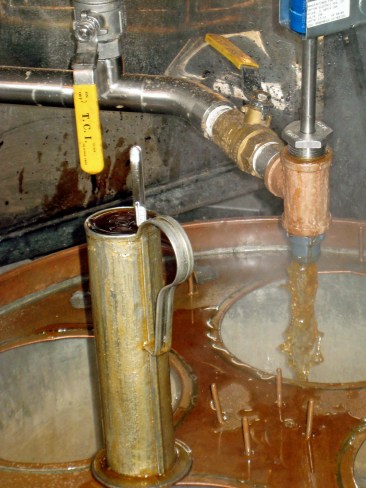 Syrup flows from the evaporator